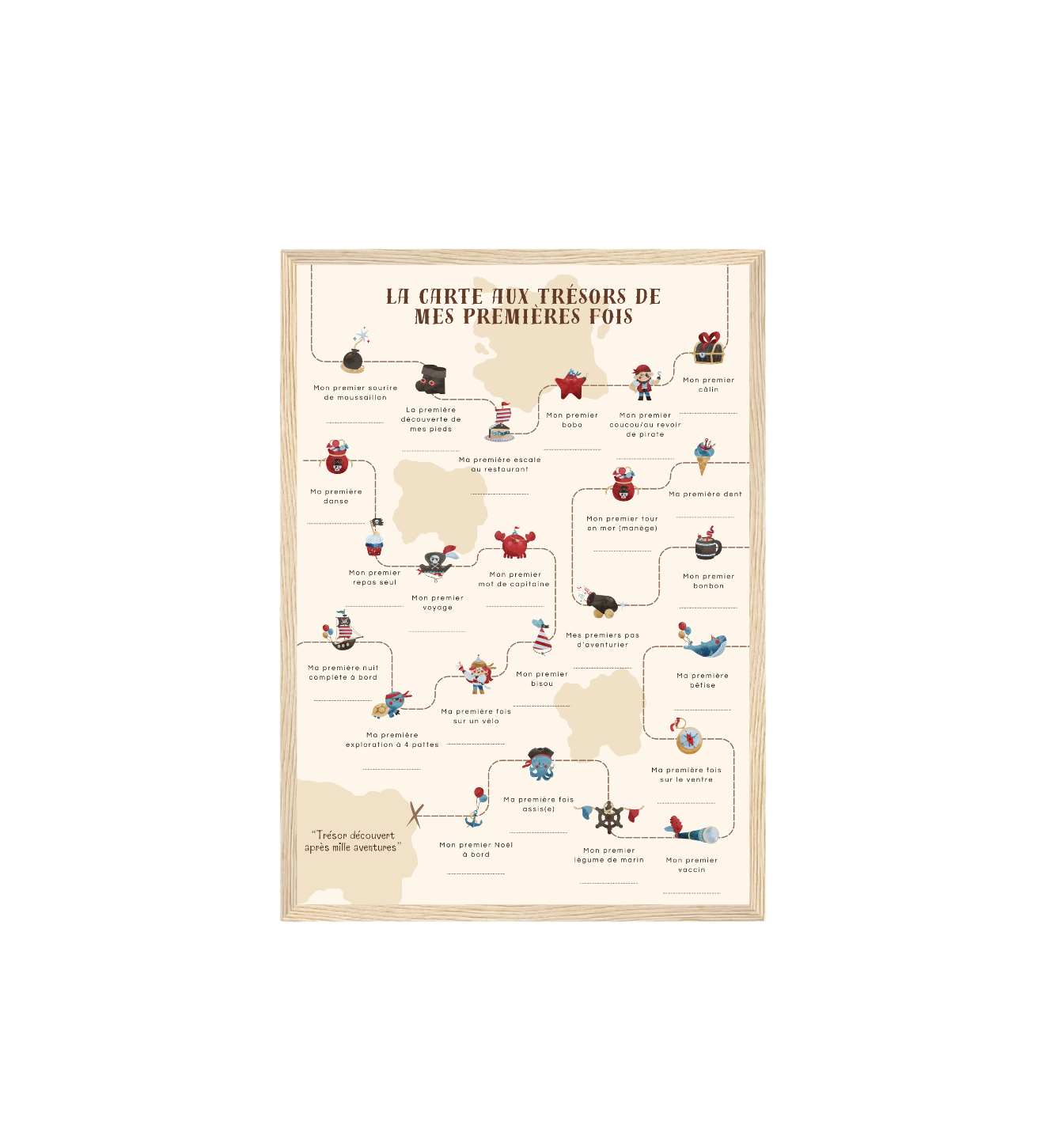 L’affiche “Mes premières fois” Ajolie est une création personnalisée pensée pour conserver et mettre en valeur les moments marquants de l’enfance : premiers sourires, premiers pas, premiers mots, premières découvertes…