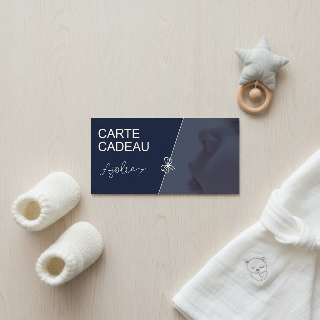 Avec la carte cadeau Ajolie, les proches choisissent eux-mêmes la création : plaid souvenir, décoration de chambre, petit linge doux pour bébé…