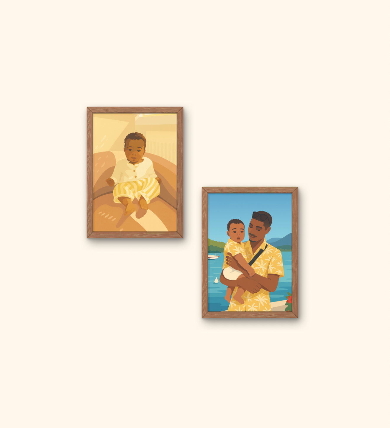 Je redessine votre famille, votre couple ou vos enfants avec leurs vêtements, leurs couleurs, leurs attitudes, pour créer une illustration joyeuse, moderne et pleine de personnalité.