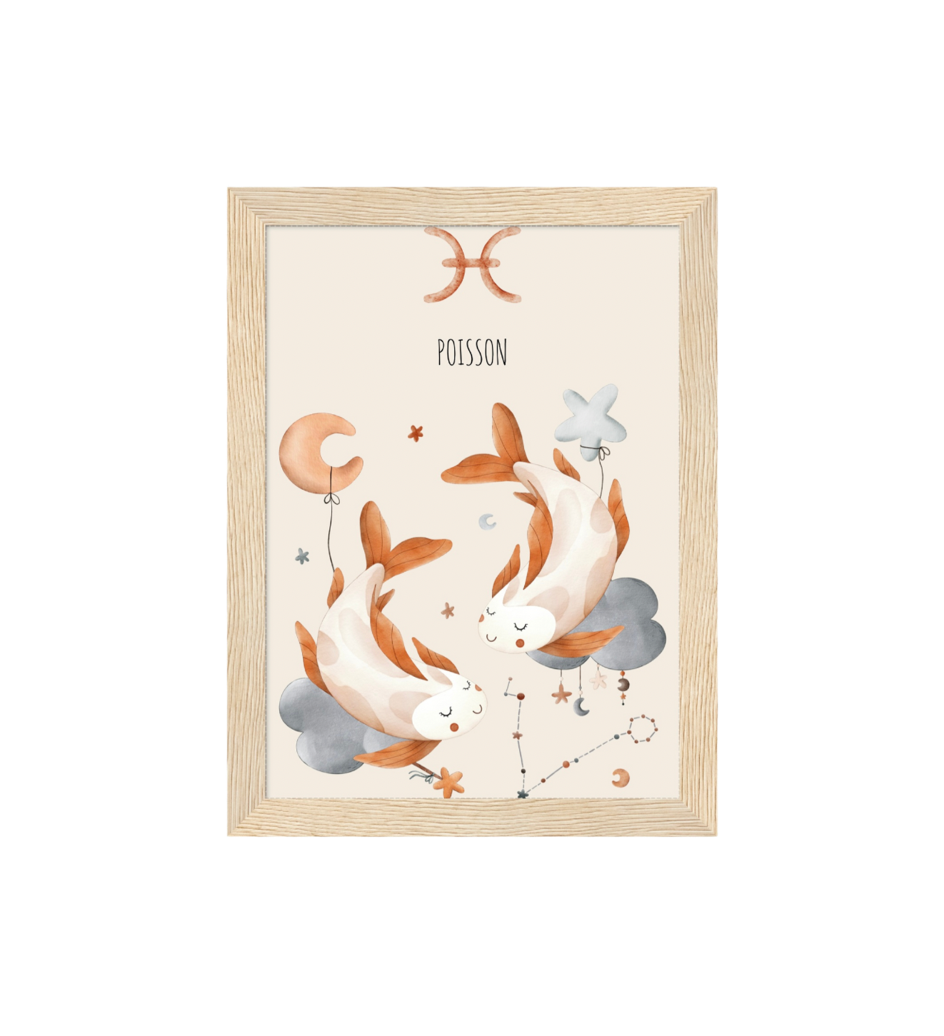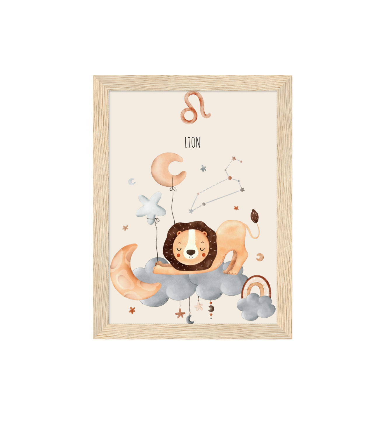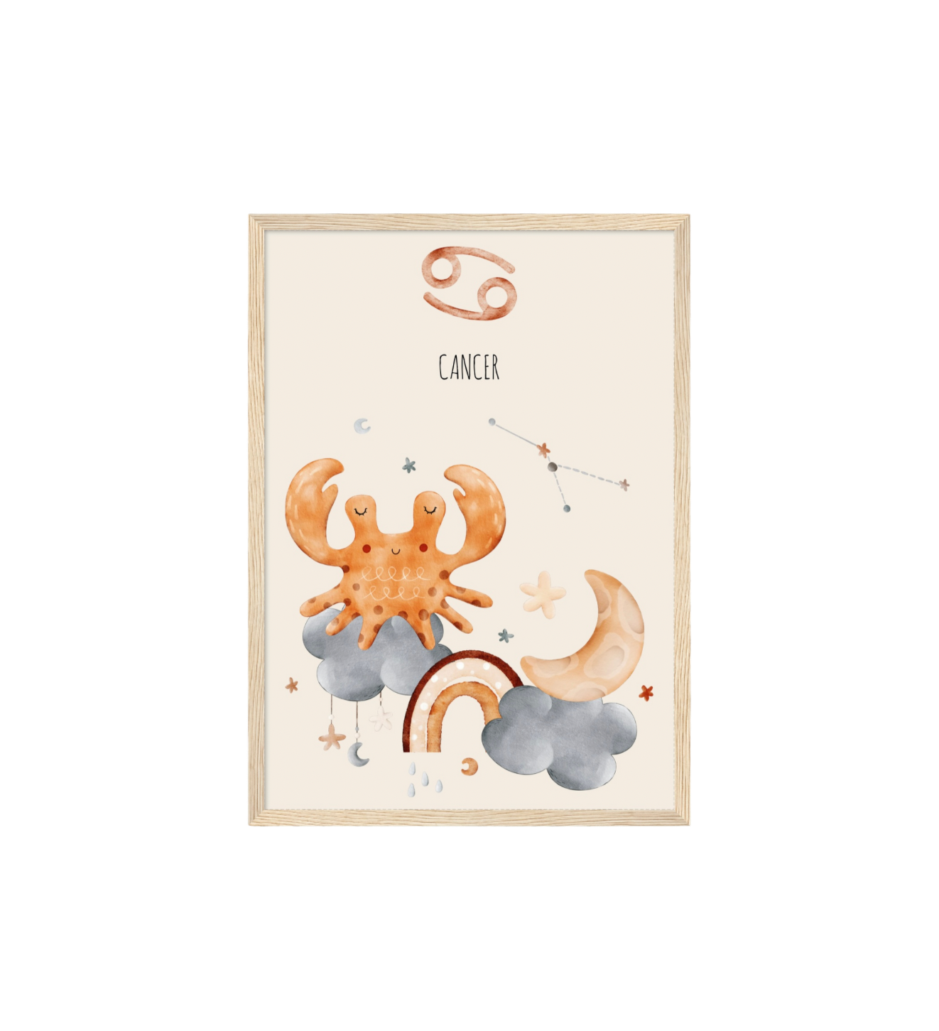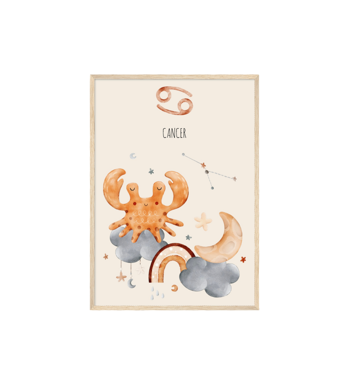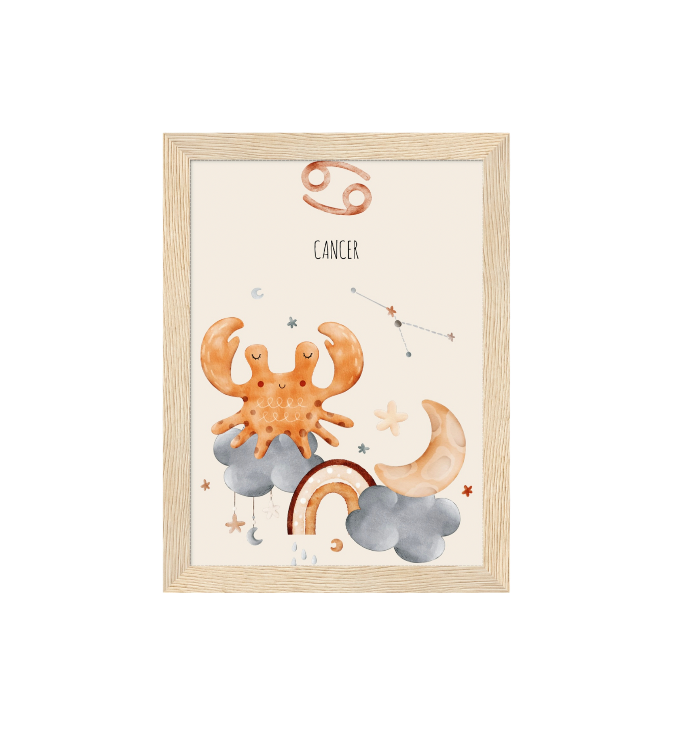 Ce cadre en bois met en valeur une illustration en aquarelle inspirée de son signe astrologique, pour un décor doux, poétique et intemporel.