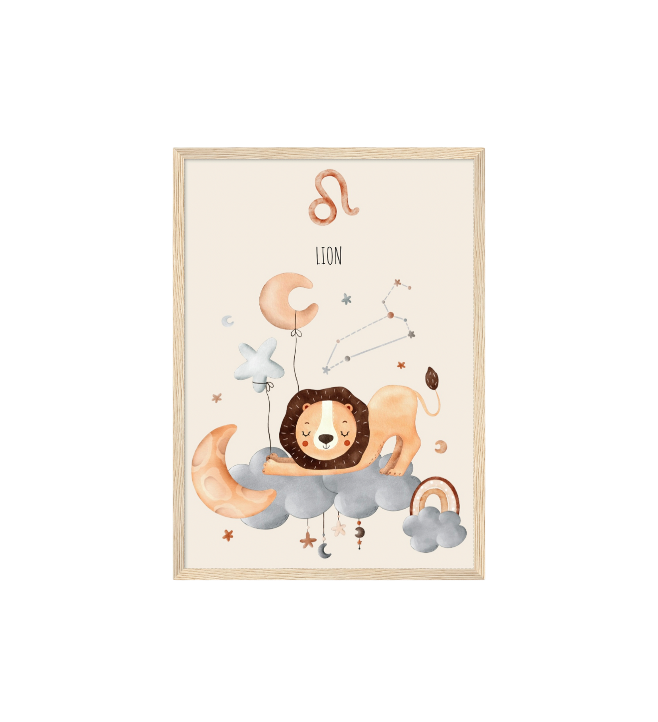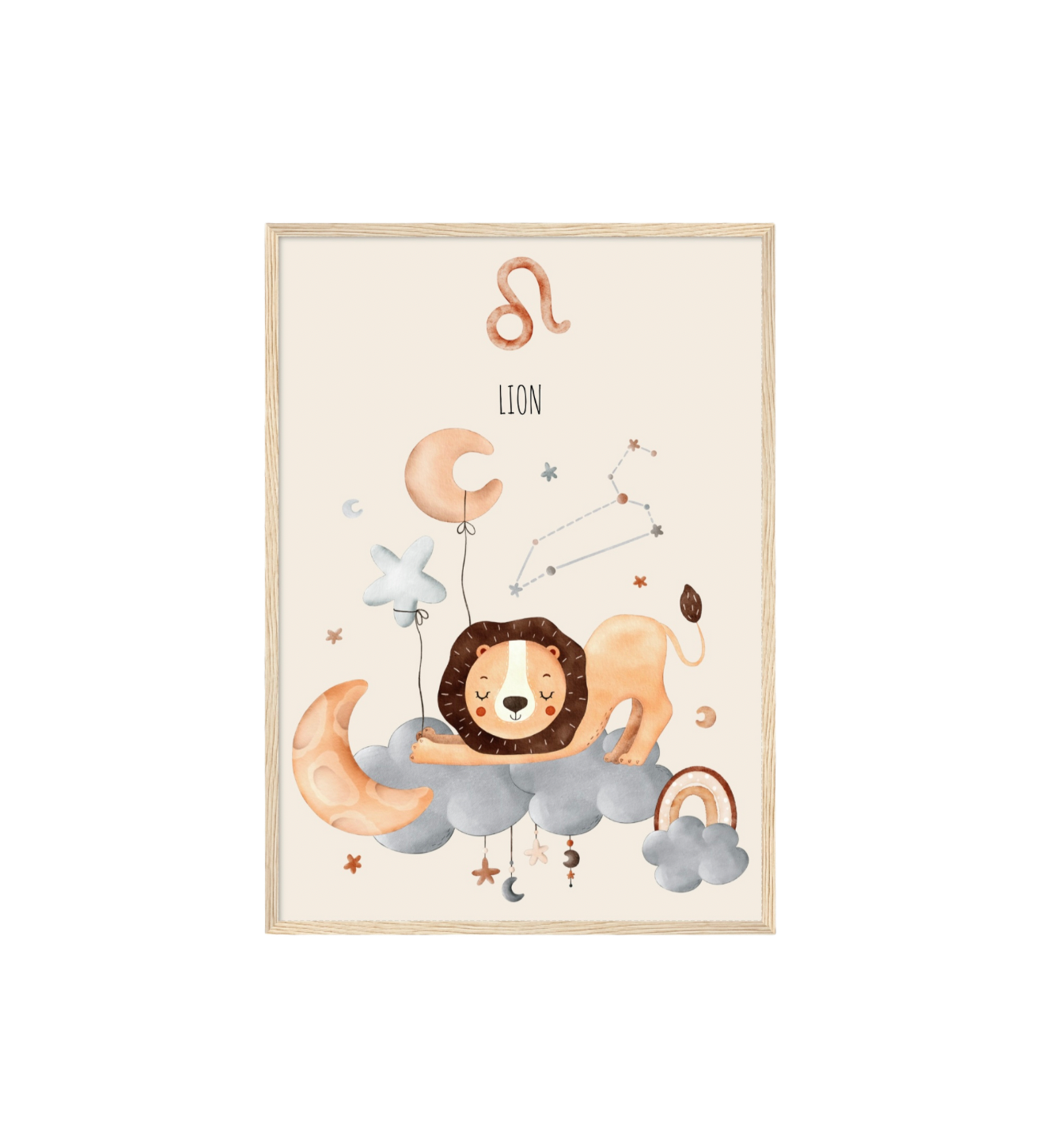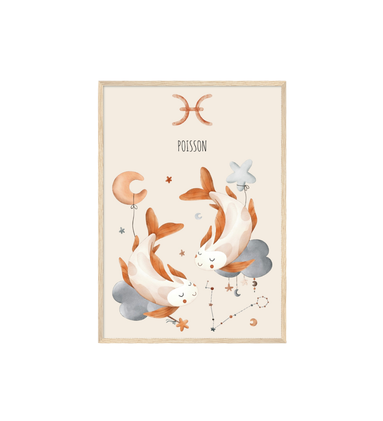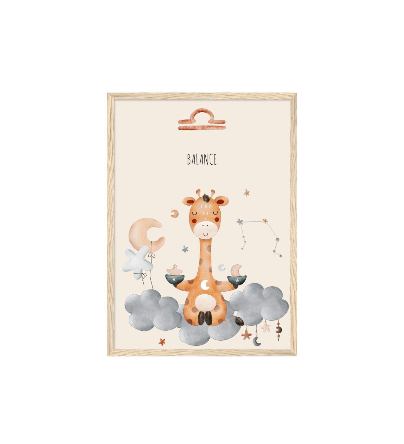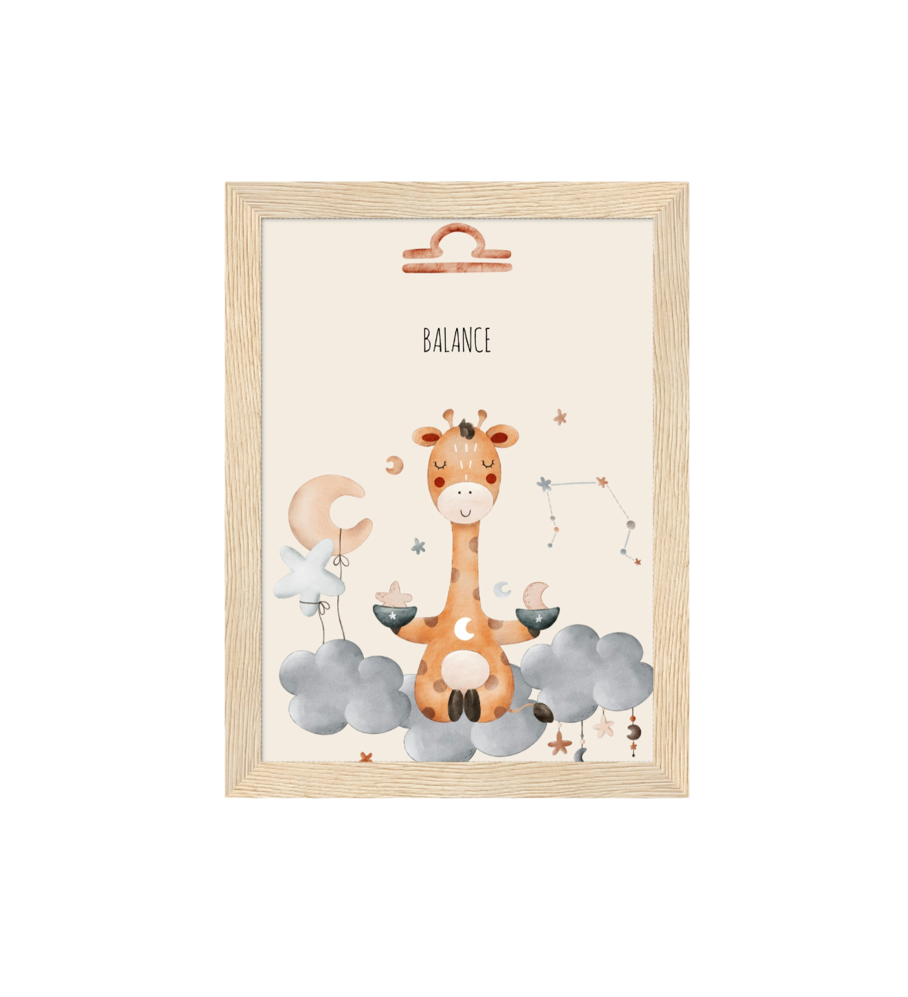Ce cadre en bois met en valeur une illustration en aquarelle inspirée de son signe astrologique, pour un décor doux, poétique et intemporel.