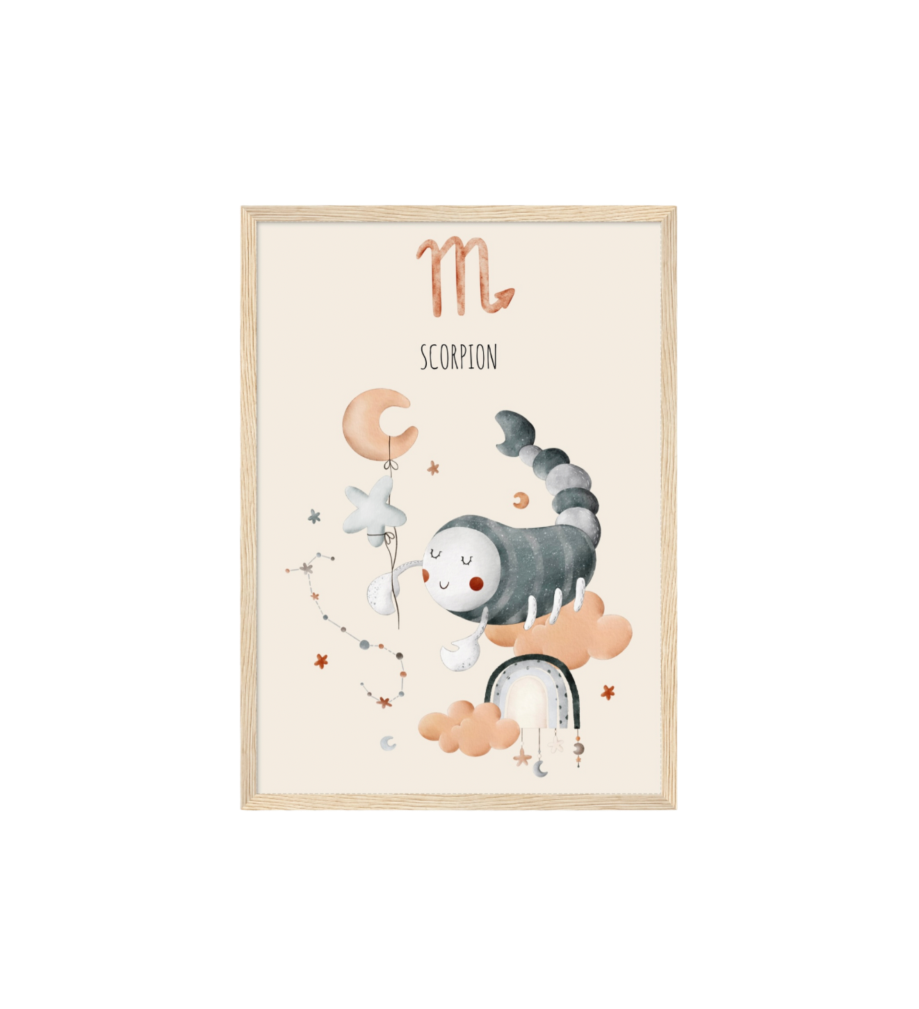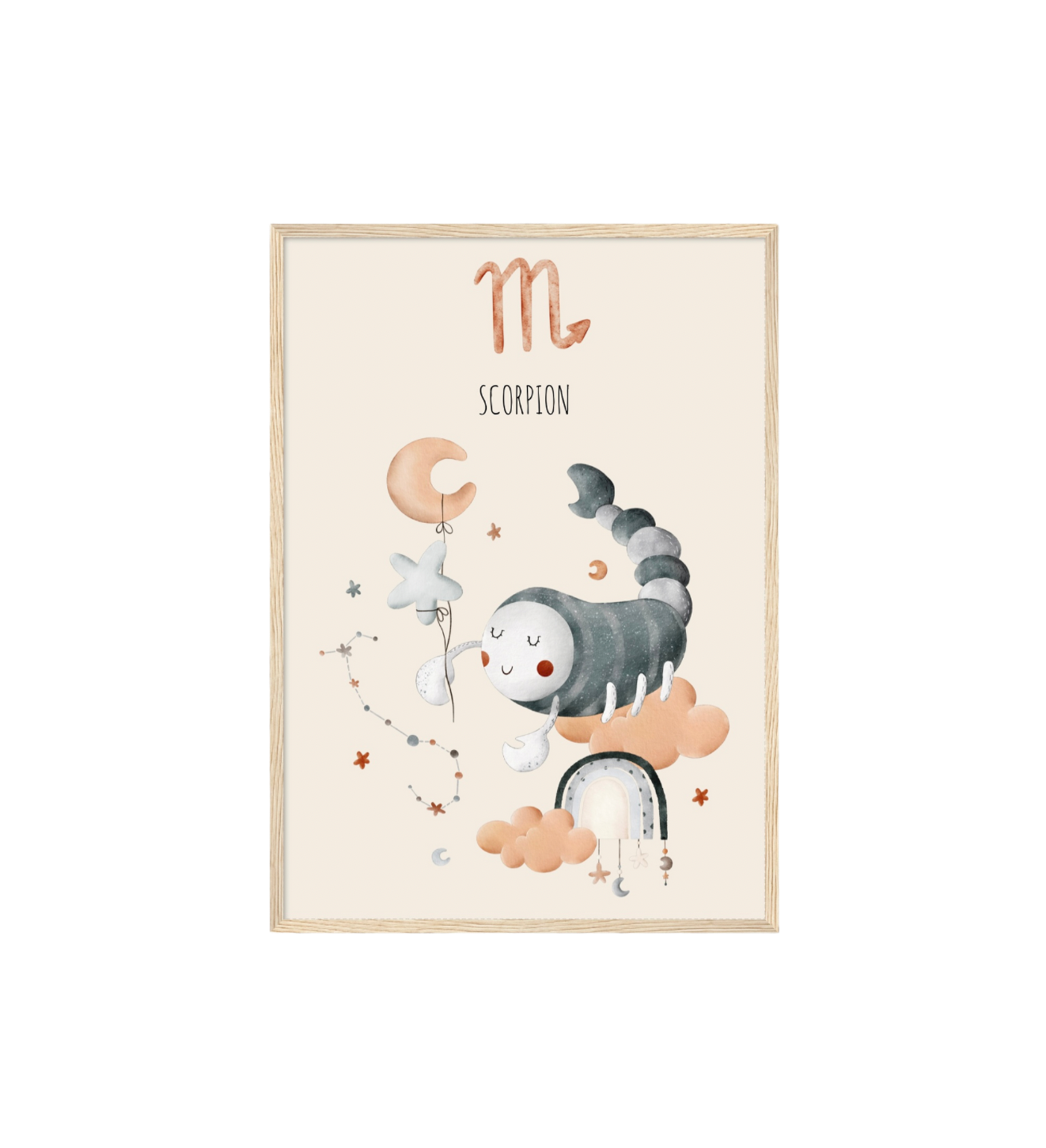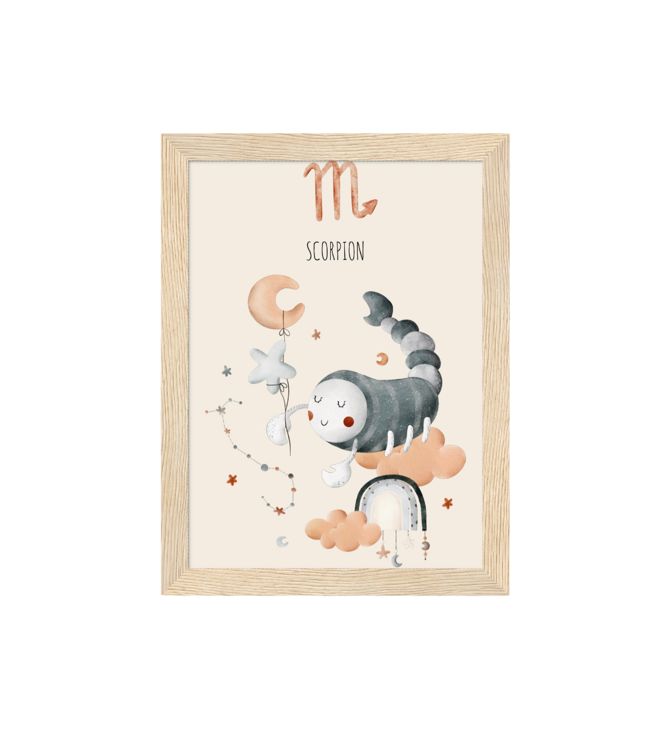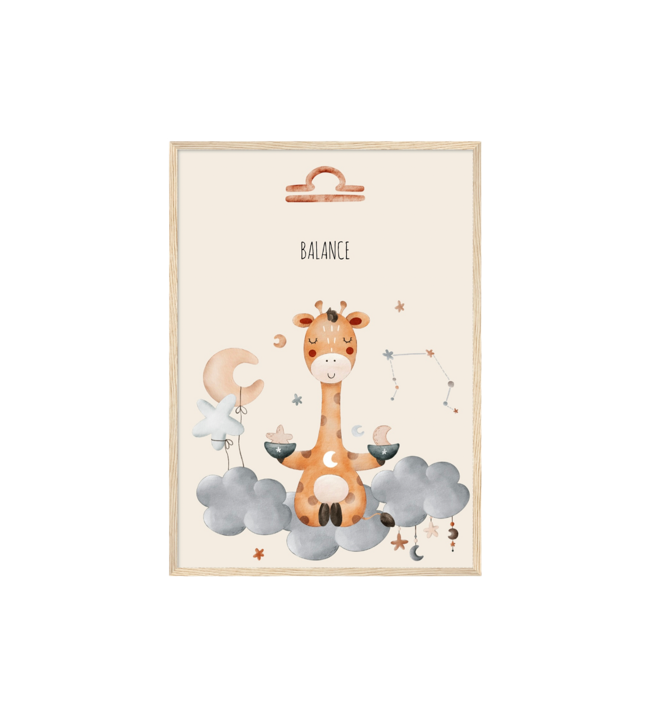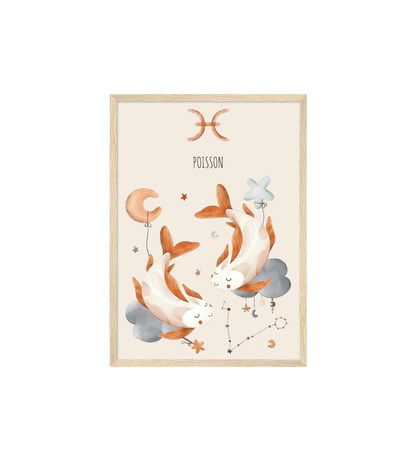 Ce cadre en bois met en valeur une illustration en aquarelle inspirée de son signe astrologique, pour un décor doux, poétique et intemporel.